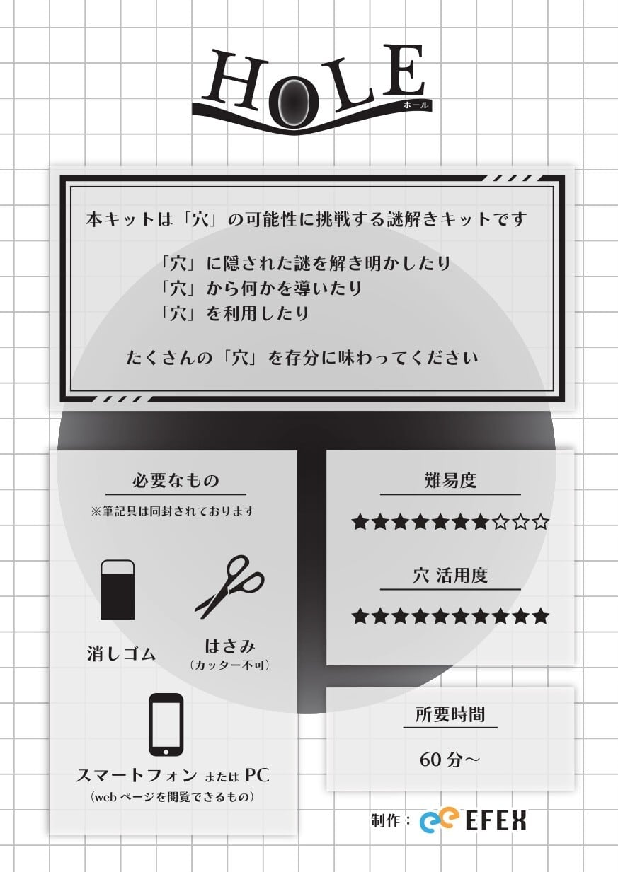 本キットは「穴」の可能性に挑戦する謎解きキットです